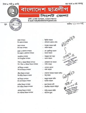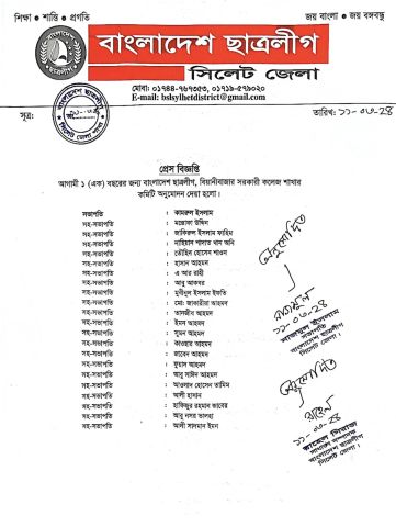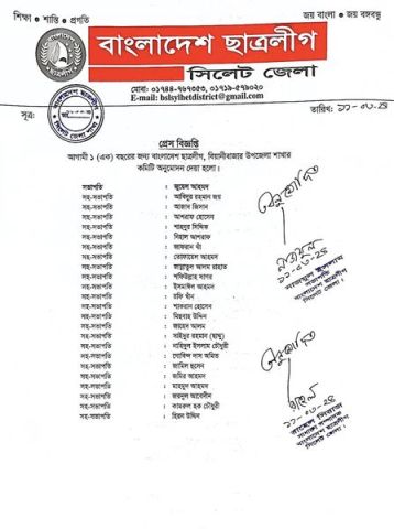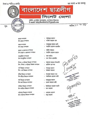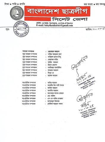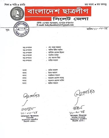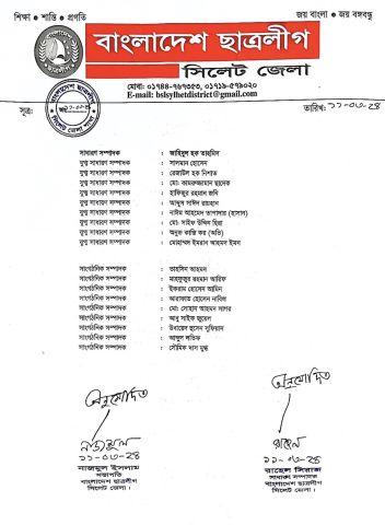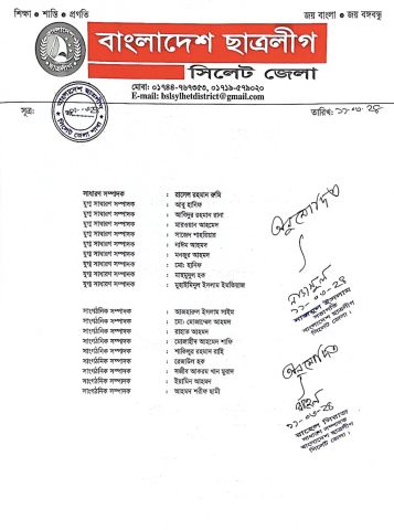 বিয়ানীবাজার ছাত্রলীগের ৩ ইউনিটের কমিটি প্রকাশ