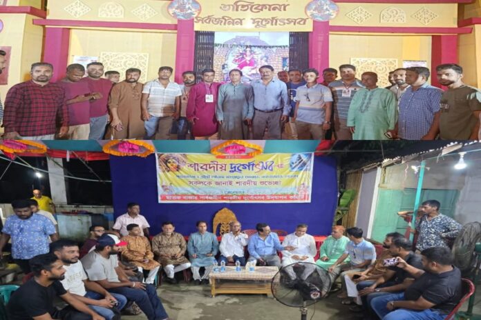 নেতাকর্মীদের সঙ্গে নিয়ে তিনি শারদীয় দুর্গাপূজাকে সম্প্রীতি ও সৌহার্দ্যের প্রতীক হিসেবে উল্লেখ করেন এবং সকল ধর্মাবলম্বীদের মাঝে শান্তি ও ঐক্যের বার্তা ছড়িয়ে দেওয়ার আহ্বান জানান।