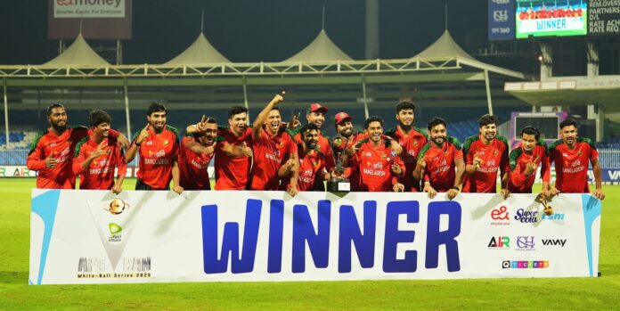 তিন ম্যাচ টি-টোয়েন্টি সিরিজে সব ম্যাচেই জয় তুলে নিয়ে আফগানিস্তানকে হোয়াইট ওয়াশ করেছে বাংলাদেশ। আজ শারজা ক্রিকেট স্টেডিয়ামে সিরিজের তৃতীয় টি টোয়েন্টি ম্যাচে আফগানিস্তানকে ৬ উইকেটে হারিয়েছে জাকের আলীর বাংলাদেশ। এর আগে ২০১৮ সালে বাংলাদেশকে দেরাদুনে হোয়াইটওয়াশ করেছিল আফগানিস্তান। সেই হোয়াইটওয়াশের প্রতিশোধ নিয়ে নিল বাংলাদেশ।