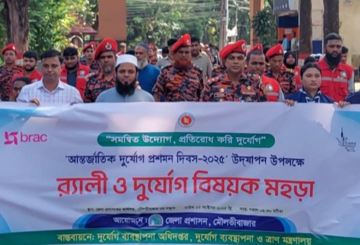 “সমন্বিত উদ্যোগ, প্রতিরোধ করি দুর্যোগ“ এই প্রতিপাদ্যকে সামনে রেখে মৌলভীবাজার জেলা প্রশাসনের আয়োজনে ও দুর্যোগ ব্যবস্থাপনা অধিদপ্তর বাস্তবায়নে র্যালি, আলোচনাসভা ও মহড়া অনুষ্ঠিত হয়েছে।